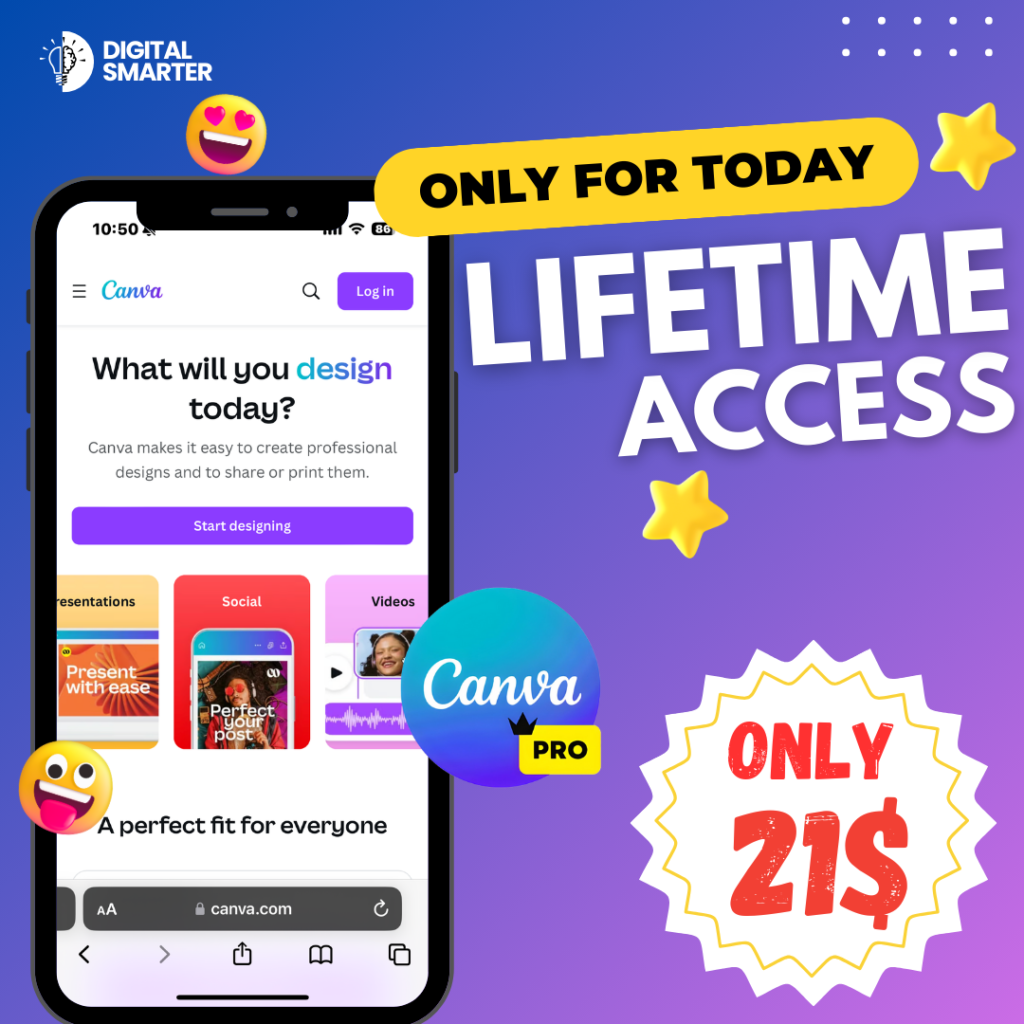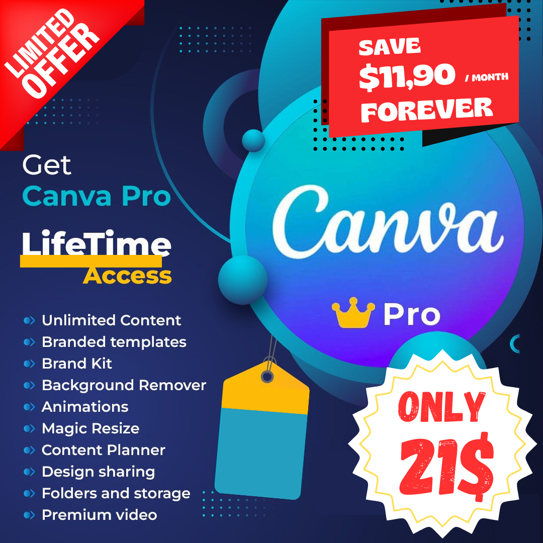 Lifetime access to Canva Pro means you can use all the premium features of Canva without having to pay for monthly or annual subscriptions. Once you make the payment, you’ll have full access to Canva Pro for life.